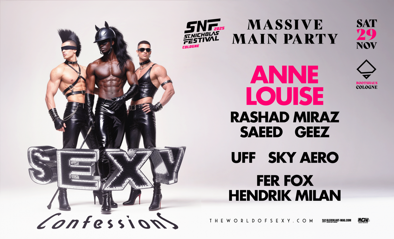 One of the world’s top LGBTQ* party brands returns to legendary Bootshaus a night made for your wildest confessions, featuring mega headliner ANNE LOUISE from Brazil. 3 dance floors, a massive mainfloor, 8 star DJs, and an army of talented dancers, artists and performers will set the stage. Expect LED walls, fire canons, lasers, and nonstop energy until the morning.